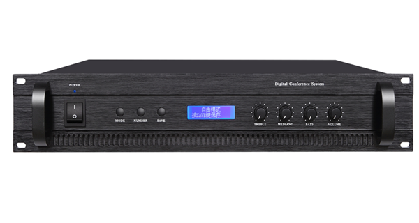 具有四個主纜端子可連接60組會議單元,并具負載及短路保護功能,增加擴展設(shè)備可實現(xiàn)250臺會議單元同時使用。
